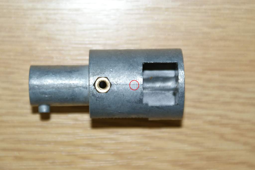 Nazdar, problemom nie je ani tak samotna hlaven, ale hop-system. Prikladam foto, na nom je to videt lepsie. Hopguma je z jednej strany hrubšia, z druhej tenšia a ta hrcka, ktora pritlaca gulu je v strede, tam, kde je ten zarez. AEG gumu tam sice navlečieš, ale tato ma pritlačnu hrču na okraji = medzi hlavnou a telom komory ti zostane asi 1 cm priestor a tym padom hlaven sa ti bude posuvat v komore. Ja som do SW M24 dal komoru na L96 a facha to paradne. Len som si musel dat spravit centrovaciu vložku. Povodna komora ma priemer 24 mm, ASpro L96 22 mm, vložka teda má 1 mm +-