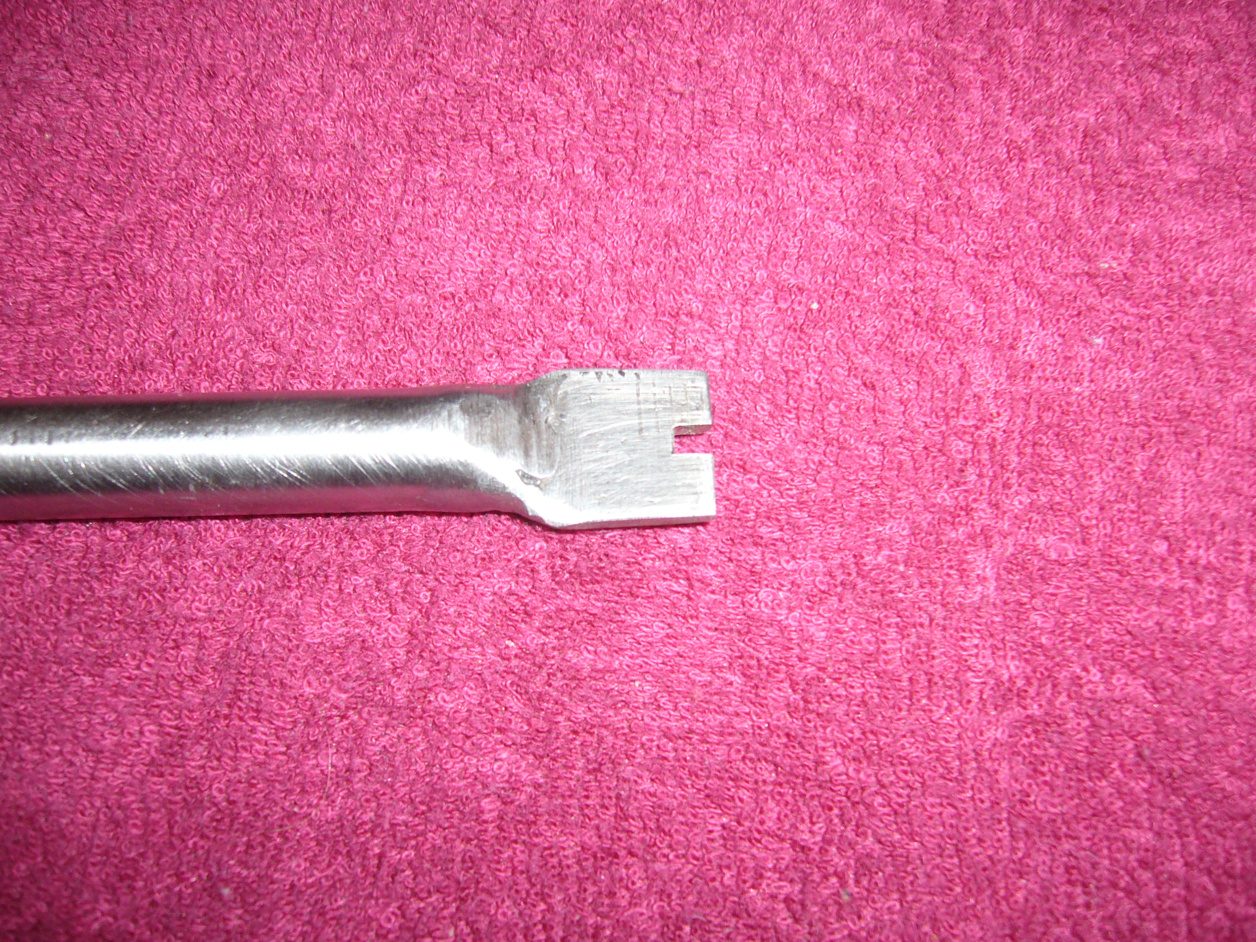 Přikládám do přílohy foto toho podomácku vyrobeneho montažního klíče na vyšroubování "válečku s napichavací jehlou a tesnenim" ze vnitřku zásobníku. Doporucuju vyrobit z pevné oceli. Na požádání vložím rozmery.