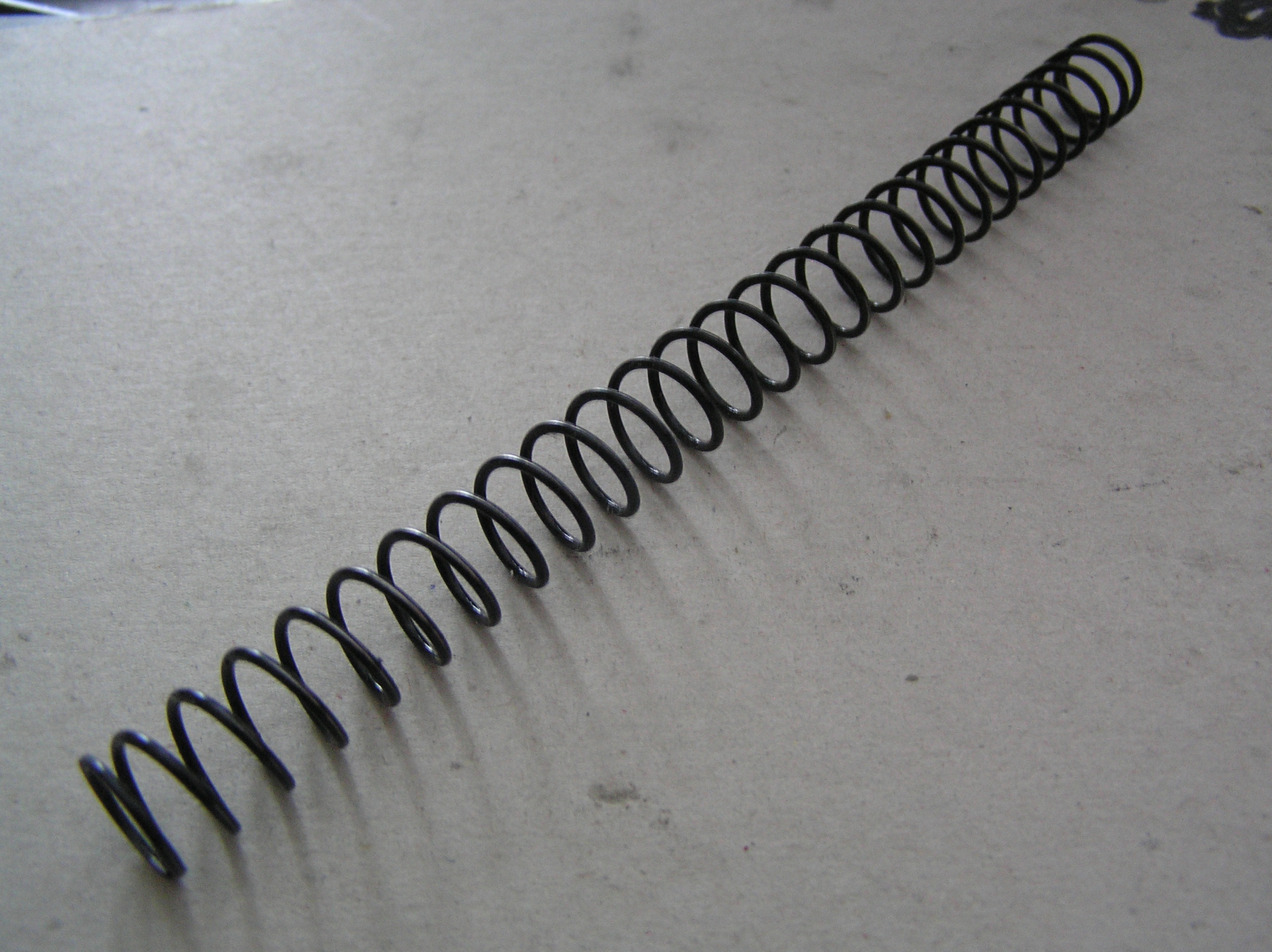 Pružina: Lineárna so zbrúsenými zakončeniami. (odhad max m120..porovnanie so základnou pružinou z CM028.)