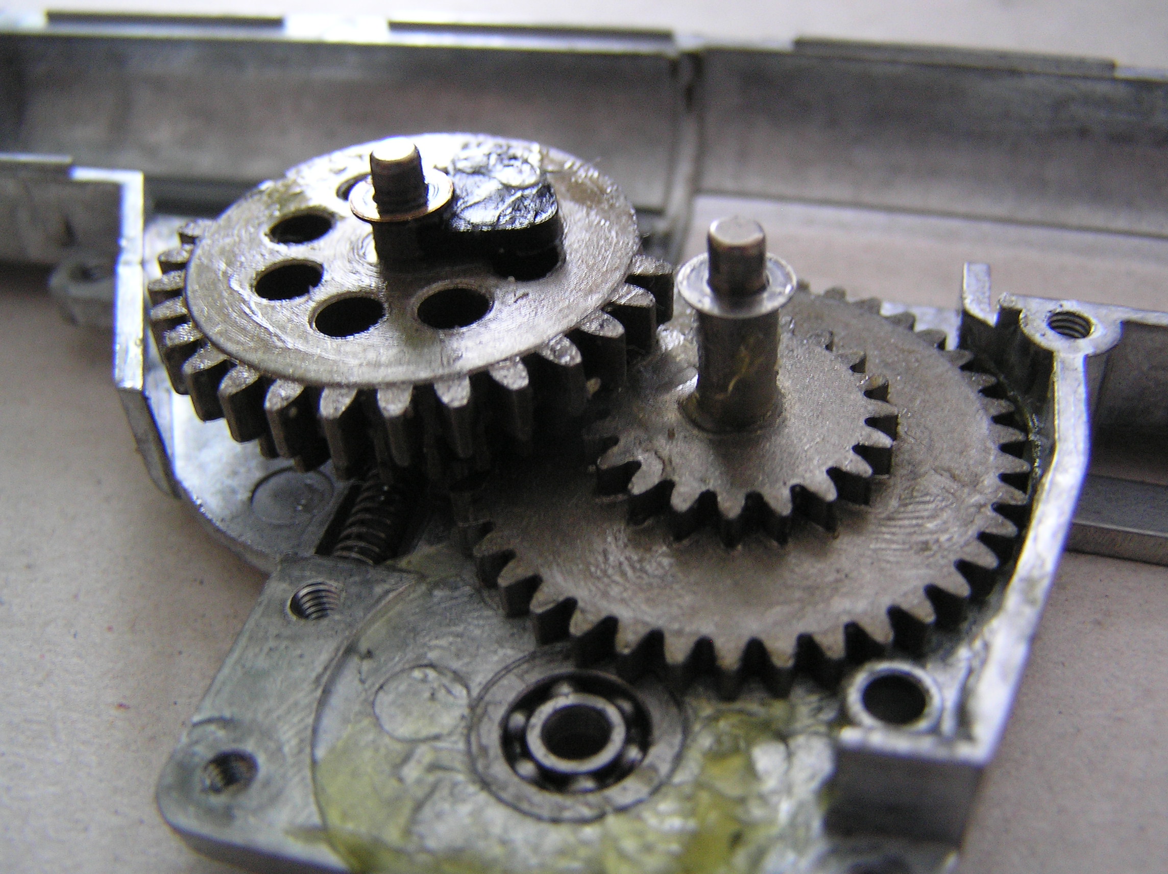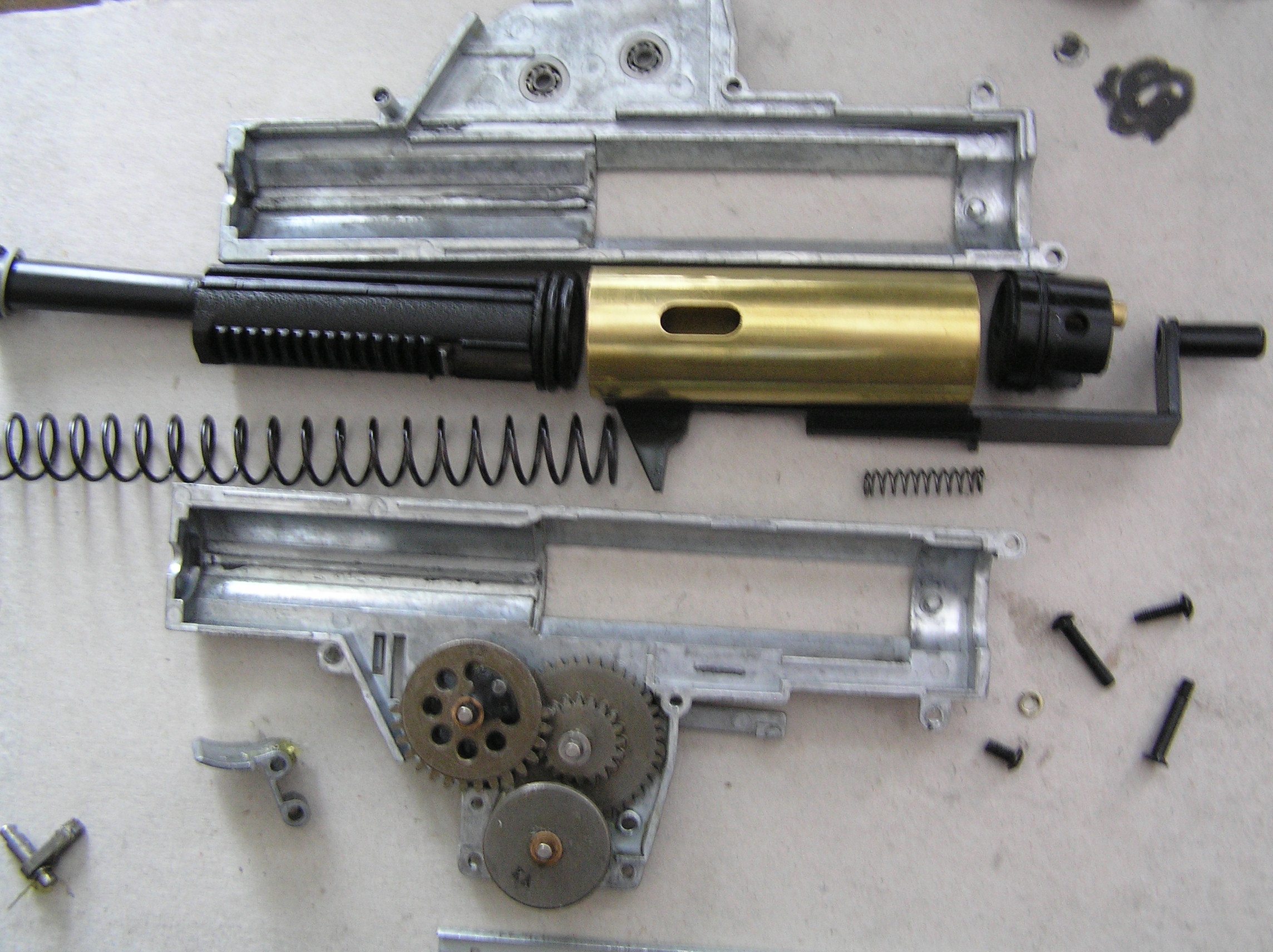 Všetky plastové diely v mechaboxe sú z naomak velmi kvalitného plastu a sú perfektne spracované.Továrne mazanie dobré, až na drážky piestu, podložkovanie velmi dobré..(pridal som len jednu podložku na motorové koleso)Vzduchotechnika tesní perfektne. Nevidím dôvod menit nejaké súčiastky..maximálne dať trysku s O kružkom a 1,5mm silikónovú kabeláž a dostanete dokonalú zbraň. Potvrdená kompatibilita: (kolesá štandardu V2a3, hlava valca V6 ASG ultimate, ramienko trysky V6 Guarder, valec/hlava piestu/piest štandard, trn pružiny V2.)