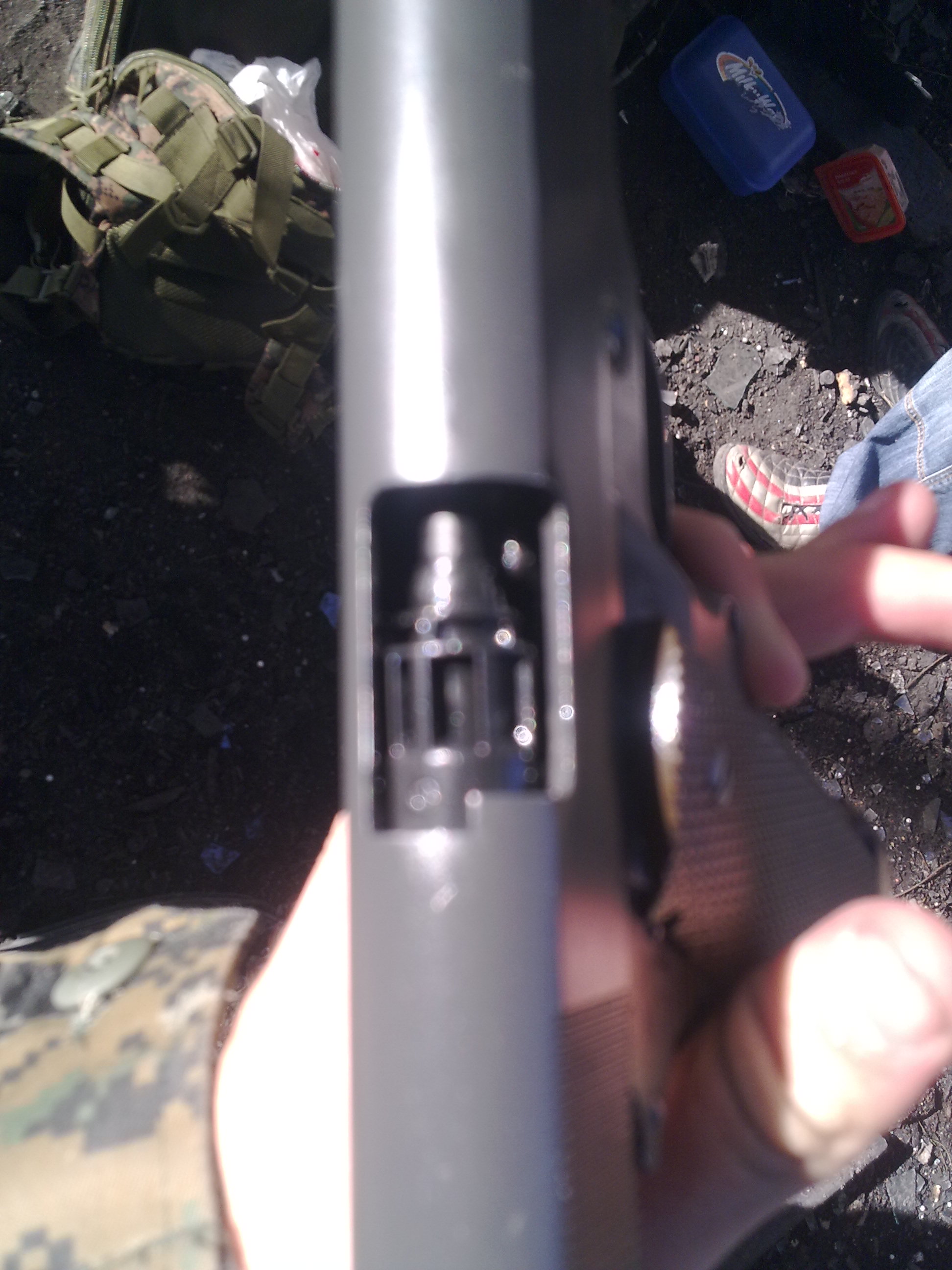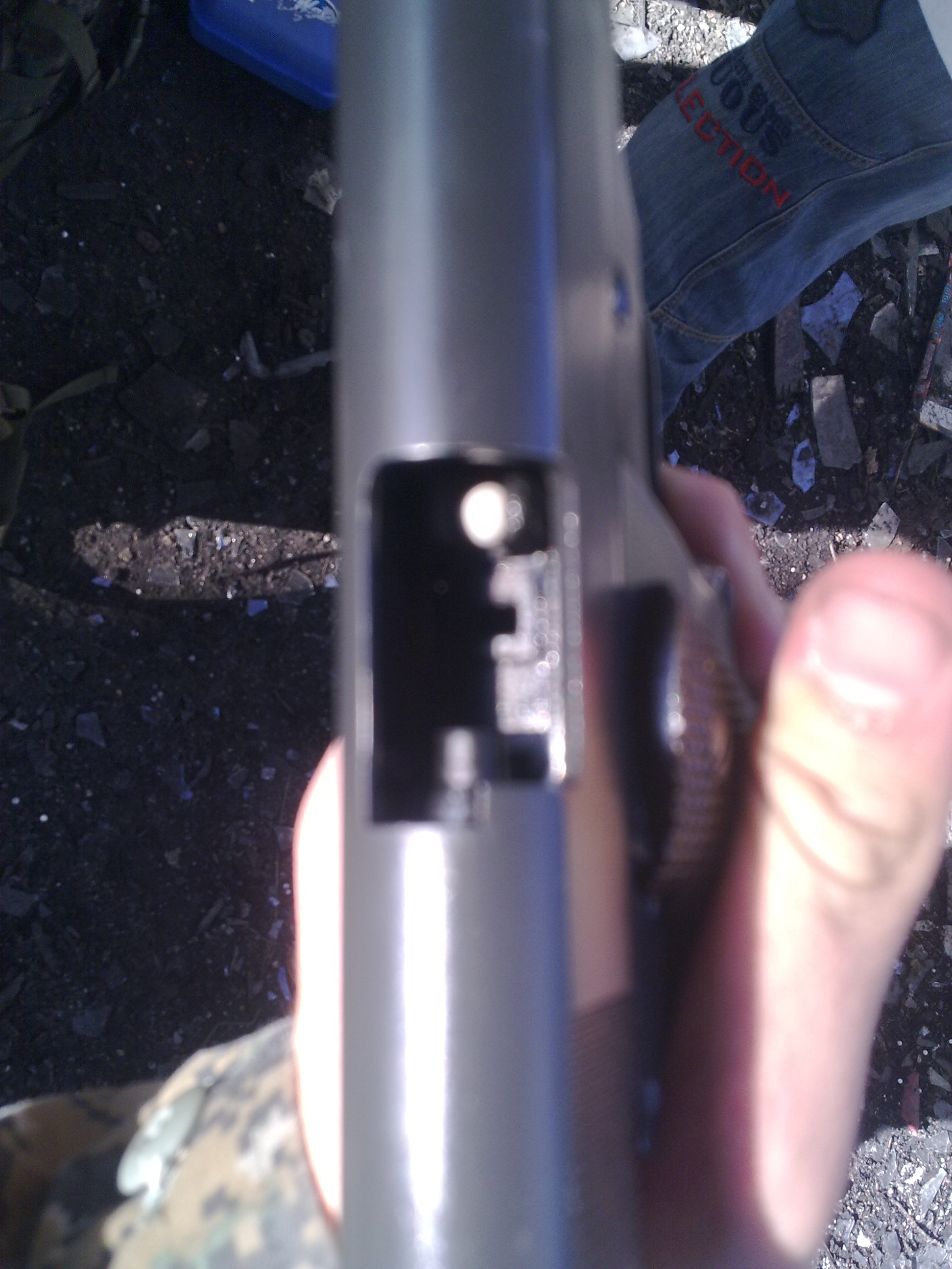 Obrázek,když ten střed kleštěma vypotáhnu tak přestane.Když však strčím zásobník do pistole s nenataženým uderníkem tak zase začne unikat (udernik se o něj lehce opírá a to stačí aby to začalo unikat).