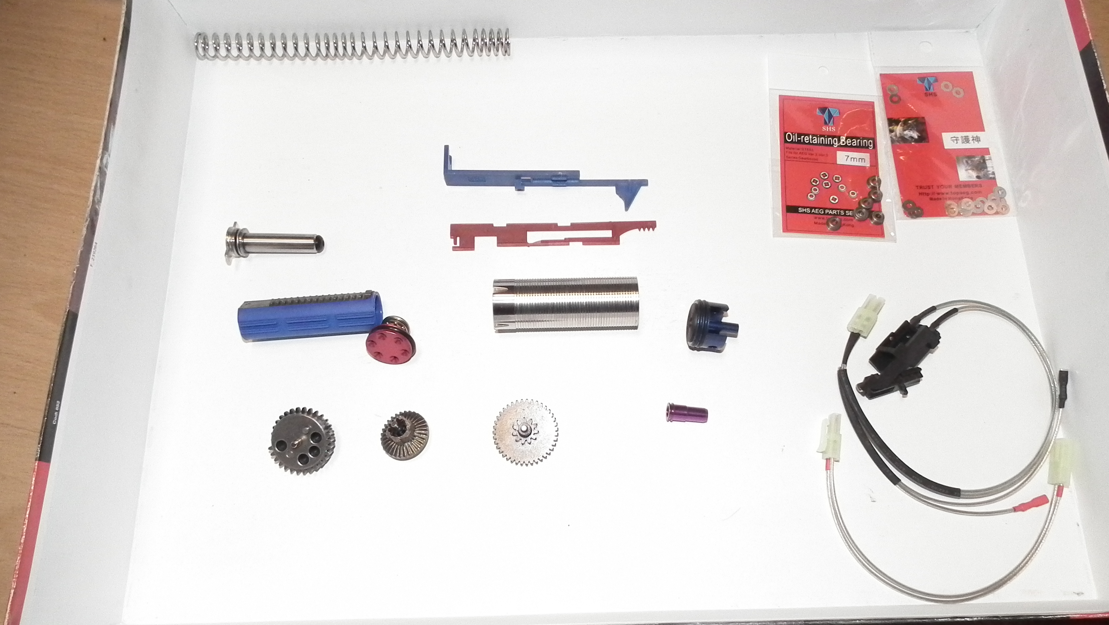 Hosi tak aby som vas uviedol na pravu mieru, Hlavne pre teba Jeff Objednaval som len vnutorne casti mechacu lebo som nemal dost prachov na kupu vsetkeho naraz... nekupil som motor, lipolku, nabijacku, mosfet atd, len vnutorne casti mechu aby som ho vedel zlozit. Kabelaz ktora tam je tu som kupil len kvoli tomu ze povodne pliesky na spusti boli znacne opotrebovane (predrane a opalene). Teraz som nahadzoval objednavku na motor lipku, a hlavne mosfet... Asi zajtra si idem pre to, az bude doma mosfet celu kabelaz vymenim a bude tam T-Dean konektor ci jak sa to vola. Jo a chcem este poznamenat ze ta kabelaz je myslim shs z airsoftguns.cz a vazne z nej asi pouzijem len tie pliesky lebo to som este nezazil ale tie cierne plastove casti.. ked ich nejaky borec vyrabal/skladal tak tie 2 male plastove casti co drzia pliesky megra pritiahol a tie plasty kompletne rozlamal... OMG