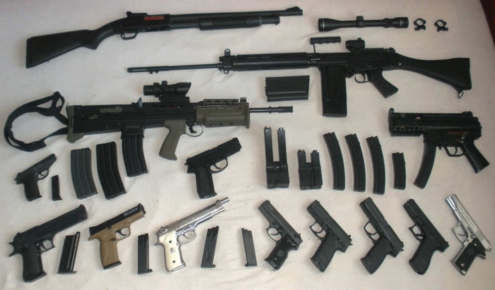 Dneska jsem uklízel a při té příležitosti dostal od ženy nakázáno přerovnat výstroj a výzbroj na AS. Takže když už to bylo venku, tak jsem si musel udělat hromadnou fotku. Bál jsem se že toho bude víc, takže je prostor pro nákup dalších věcí  Mám ještě sice nějaký pažby a díly k MP5, hromadu zásobníků do AK a další drobnosti, ale to nestojí za fotku.