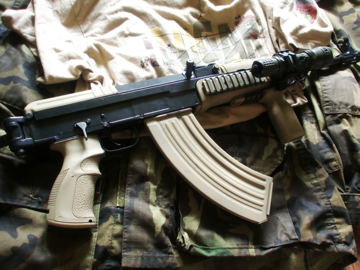 Na pořadí až tak moc nesejde, každopádně není nutný to stříkat celý na olivu, ale rovnou dělat pruhy olivy a pruhy khaki vedle sebe a pak přidat hnědou přes šablonu. Každopádně doporučuju to střídat a na zelený místa stříkat přes šablonu khaki+hnědou, na hnědý místa přes šablonu khaki+olive, na khaki místa stříknout přes šablonu hnědou+olivu. Prostě prostřídat všechny kombinace barev přes sebe. Nebude to potom tolik monotonní a vypadá to líp - nějak takhle: https://www.facebook.com/photo.php?fbid ... =3&theaterKaždopádně jestli budeš mít Sniper paint, tak odstíny budou jiný... a co jsem se koukal na něčí pušku tady, tak jejich odstíny nejsou tak kontrastní (oliva s hnědýma pruhama byla prostě na několika místech špinavá oliva). Celá galerka tady https://www.facebook.com/media/set/?set ... 562&type=3