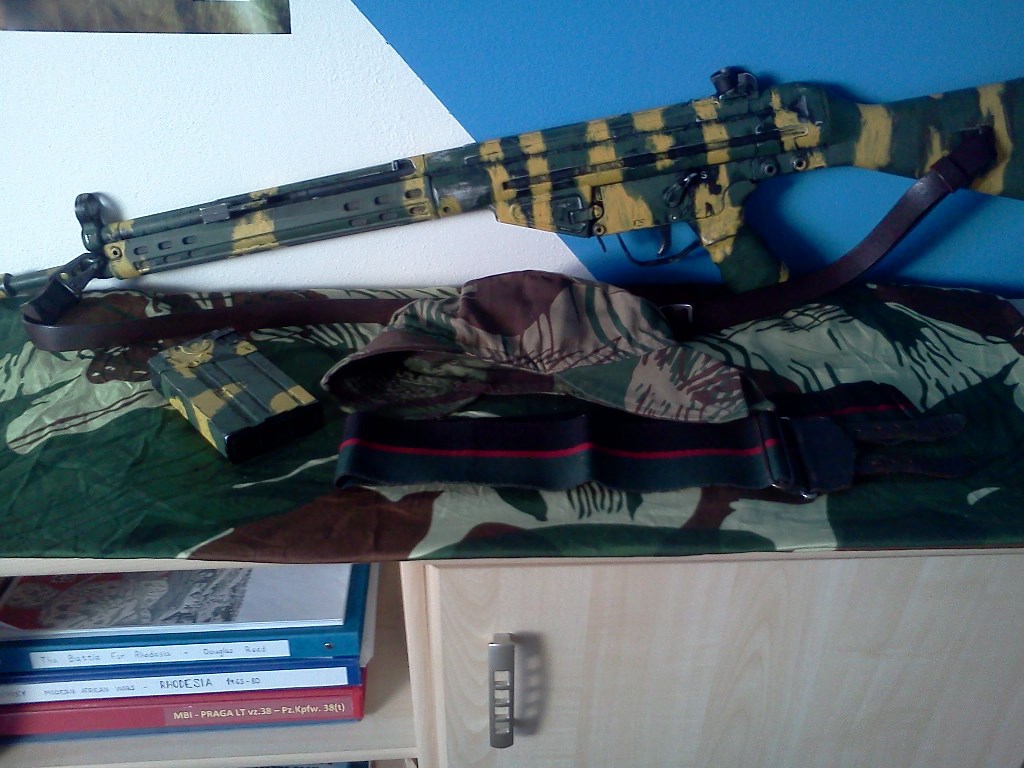 tak rozvířím trochu vody Classic Army G3 s portugalskou FMP ražbou konečně v kabátě, aby to mělo na Afriku pořádnou šťávu na první fotce barvy odpovídají reálu, na druhé a třetí to je dosti ujeté skrze umělé osvětlení..
