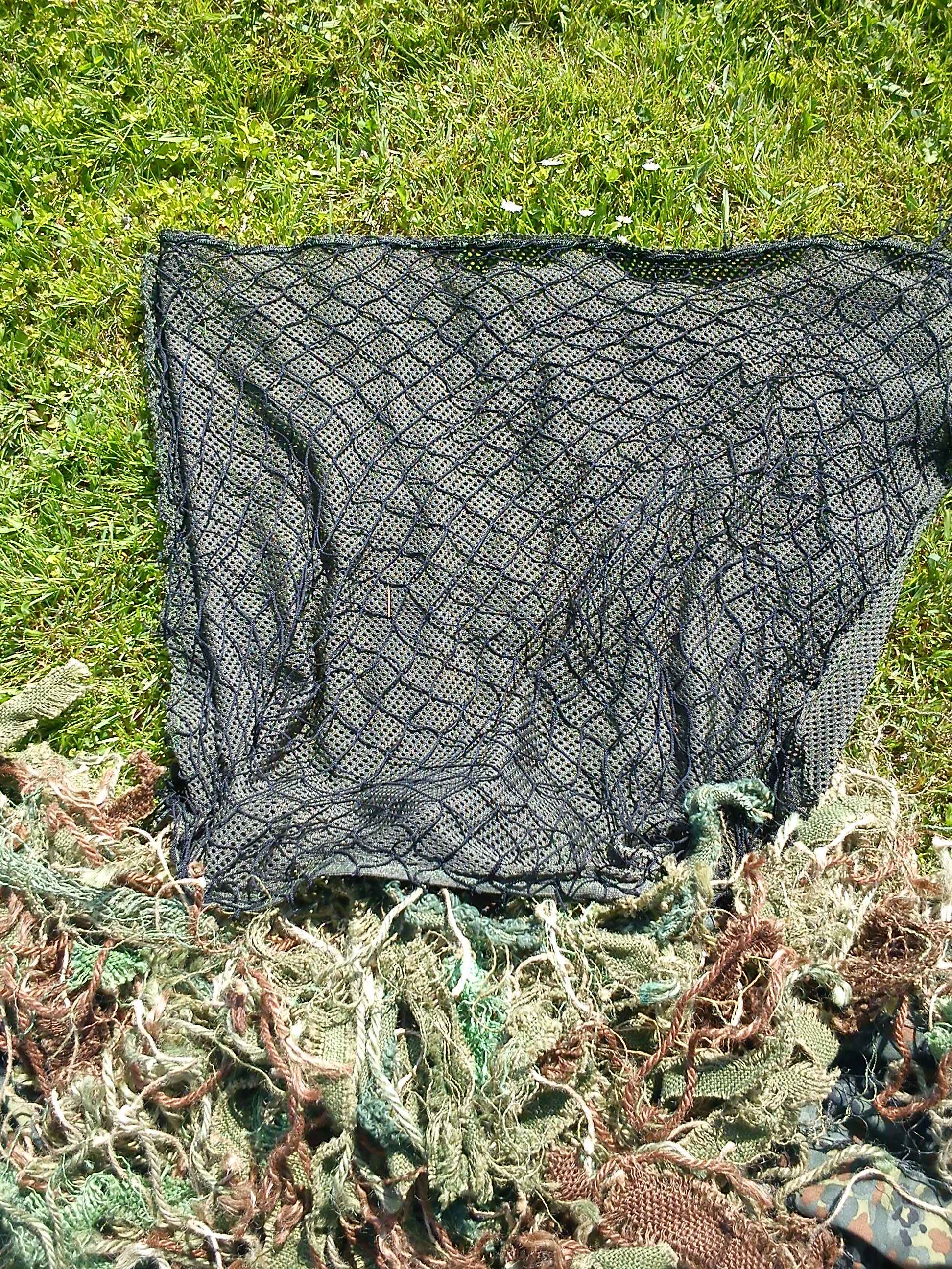 Tairo: byly toho kusy velký několik desítek centimetrů. Trhá se to většinou v místě kde je to přišitý k podkladu, prostě jako by jsi tam přišil papír. Lepší by bylo sehnat nějakou origo armádní prosekávanou maskovačku, která je pevnější a je našitá na nosný síti, ale taky asi dvakrát tak těžká. jirihoffman: podle fotek není co vytknout, snad jen že když tam dáváš vegetaci, tak je do trávy lepší tráva, než listí