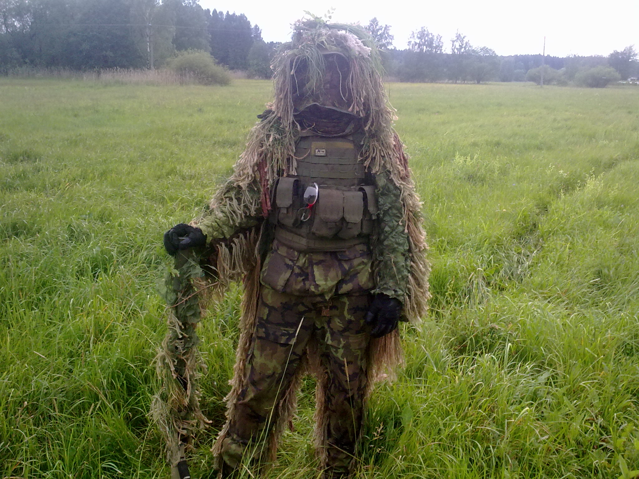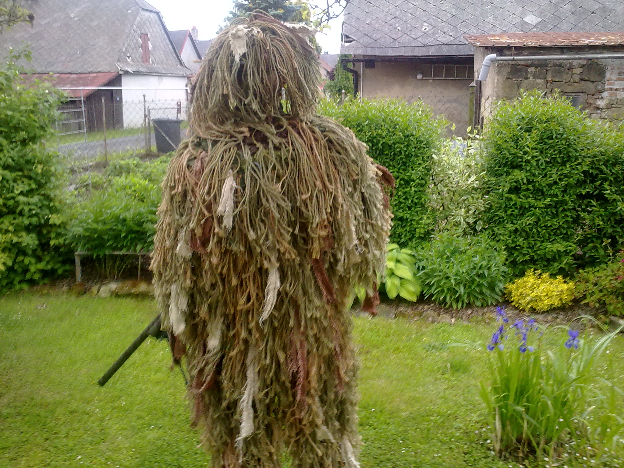 Sice ty světlý docela svítěj, ale myslím že si to ještě sedne. a kdyby ne, tak to trošku zašpiníš a bude to super. Jinak obecně když už máte někdo trochu slušnýho hejkala, tak by bylo fajn fotit ho i zepředu apod. Ať je vidět konstrukce a jak je to celkově řešený. Chlupy na zádech jsou fajn, ale o uživatelských vlastnostech to moc nevypovídá  ad ghillie competition, slyšel jsem o soutěži odstřelovačů na slovensku kde měli za úkol se někam nepozorovaně proplížit. Všichni hejkaly, vegetaci atd., ale jedinej člověk co se dostal až do cíle měl na sobě jen a pouze slovenský maskáče vz.97 a nic víc  PS: ta druhá fotka na zahrádce mezi keříkama je supercool, taky si musím podobnou udělat