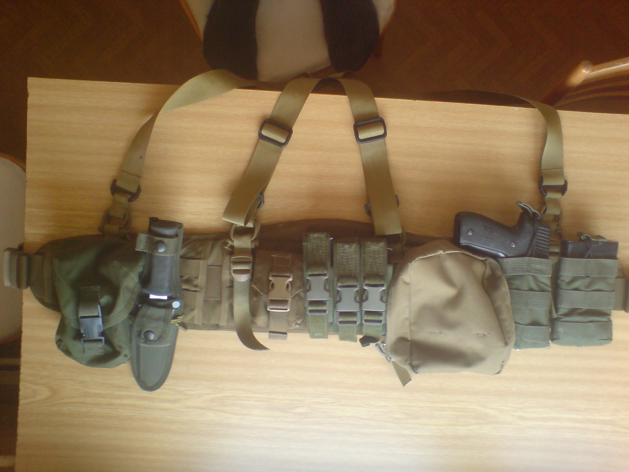 Měl si to někdy na sobě? To je fotka ze zadu, to co vidíš po stranách si vepředu sepneš k sobě. Plížit se s tím je takřka nemožný i s prázdným. Já sobně používám obranou Alici: bojový opasek - nový s fastex sponou, dráťák se při plížení občas rozepne, Y kšíry, 2xM16 sumka a čutora, vše na bocích, takže je i místo na náprdelník. Zkoušel jsem to i v LBW, po místní radě, ale protože jsem hubený, tak mi to nešlo seřídit tak, abych sumky dostal na boky. LBW používám na assault akce s útočnou puškou a tu obranou Alici na občasný sniperování a to jen v případě, že je to na dýl. na standartní akce má všechno v kapsách. Na co plničku, nebo pytlík kuliček?  Dva tlačáky mi pokryjí celý den a to druhý v drtivé většině případů ani nevyndám. Jediný co potřebuješ dalšího je pití a občas nějakou enrgetickou stravu. Pití s rozvahou, protože jinak se člověku vždy začne chtít chcát v nejmíň vhodnou chvíli..