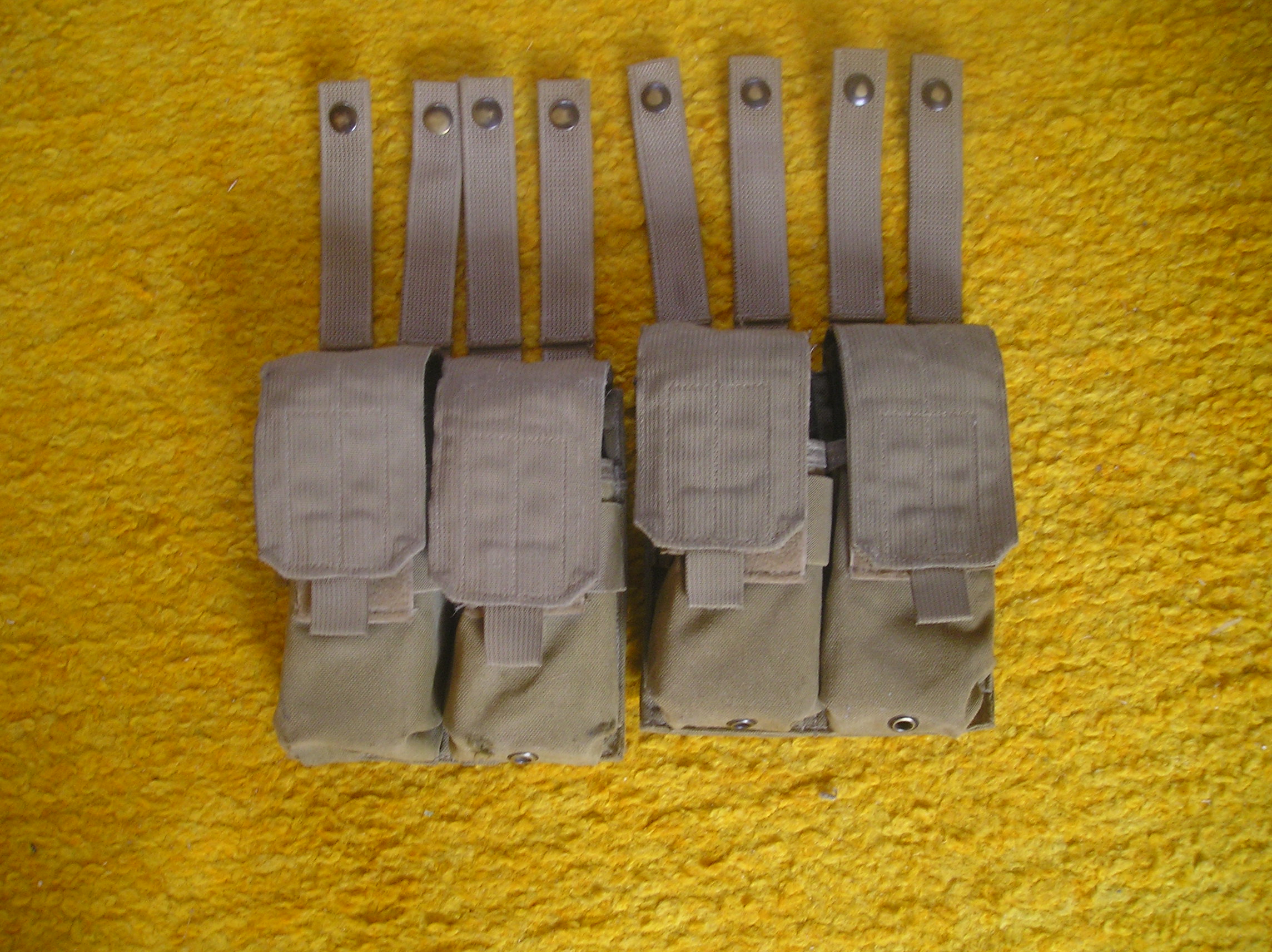 Sumky na Stanag zásobníky v khaki - Eagle industries za super cenu. Akorát nevím jak je možný do jedné nacpat 4 zásobníky. Bez rozstřižení té gumy okolo je to nemožné.