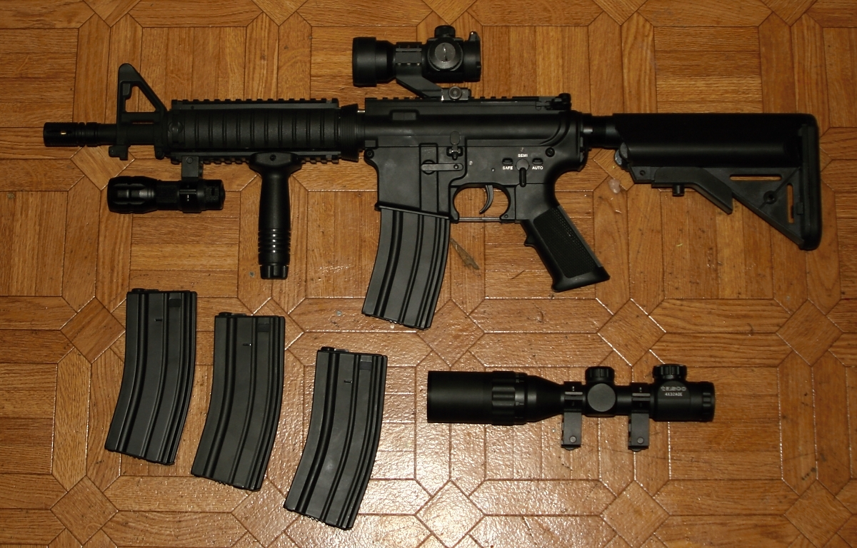 M4 od innokatsu Ve zbrani je instalovaný Airsoft Suregon upgrade kit (drobné díly v závěru, zvýšení úsťové rychlosti o zhruba 30%), Ratech hop-up gumička, GP Magic pin (odstraní vůli mezi horní a dolní částí těla), GP anti rotation links, regulovatelnou hop-up komoru 5KU, rukojeť z ostré M4, 2x WA zásobník s ražením Colt http://img14.allegroimg.pl/photos/orygi ... 2177337605cena: 14 000 Kč