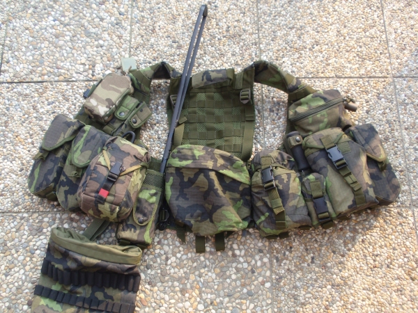 Tak se taky pochlubím posledním nákupem a velkou radostí - všecko funglovky, nic z druhé ruky. Pořídil jsem si vestu ALP Modul I/SOG Mk5 ve vz.95 s upravenými rameny + hromadu ALP sumek k tomu. Dále jsem kosu osadil Kinggun duralovým předpažbím s krytkama a nakonec pořídil zelenej Blackhawk Rigger's belt (ten jsem nefotil, prostě opasek). No a putuje ke mě ještě pár dárků, pak nadhodím