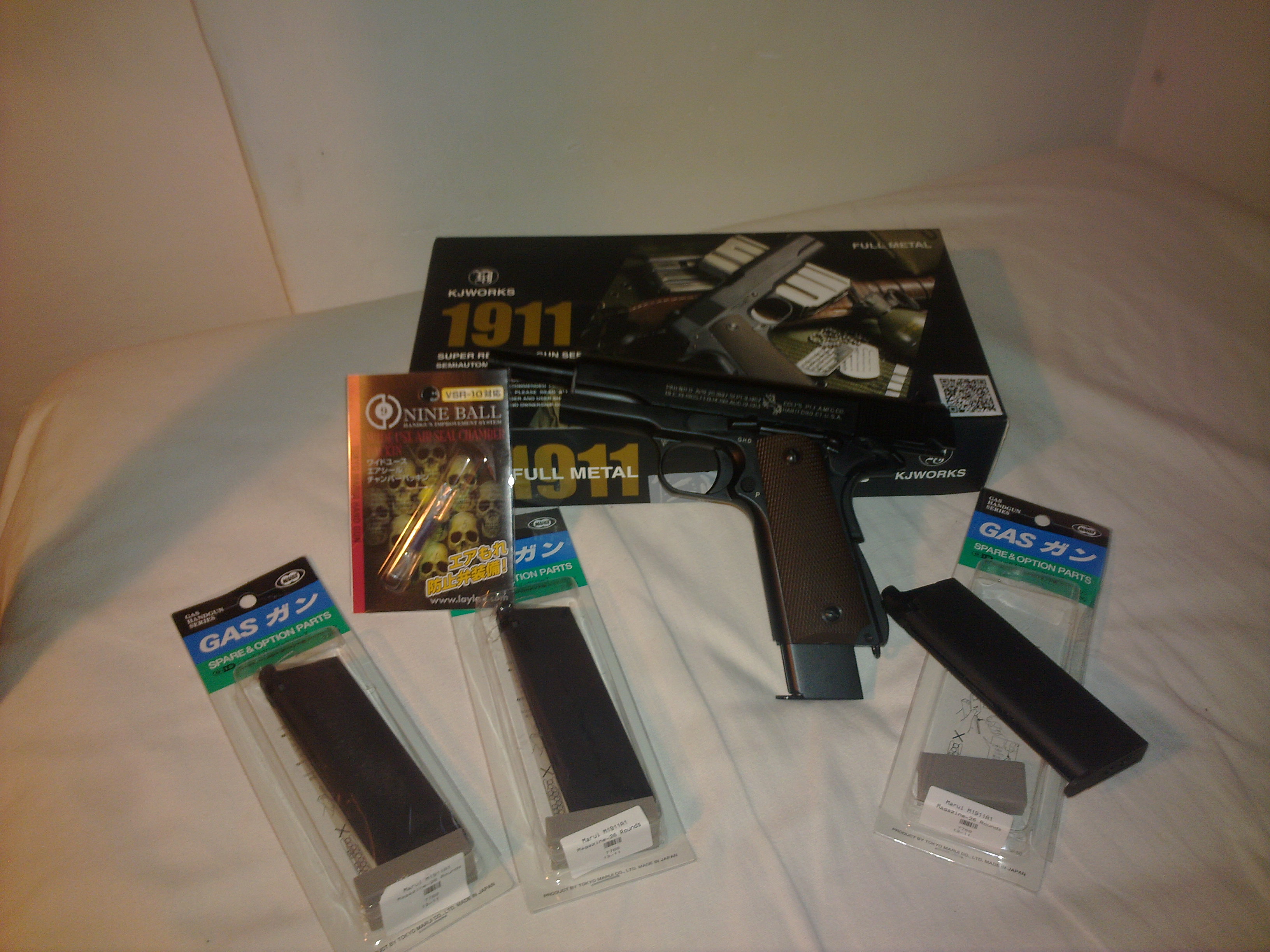 Tak dorazila zasielka z uncompany. KJW 1911A1 laser markings + 3x TM zasobnik + Nineball fialová hop guma. Ešte pribudne z dojčlandu 150% set pružiniek, hlava piestu a ravenka od PDI. Chcel som 1911od KJW a som sakra prekvapený..čakal som horšie spracovanie.