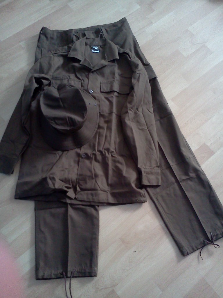 nějaký bordel bugr ode mě, docela nezvyklých věcí v ČR. SADF Pattern 73 webbing (na fotce s fr. lahvemi) SADF Brown trousers - Bridge Clothing 1991/1992 SADF Brown shirt longsleeve - Endeavour Clothing 1992 SADF Brown bush hat - J. L. Normoyle 1985 Webbing obnošenej, jinak uniforma funglovka, přišla ejště v původních pytlích