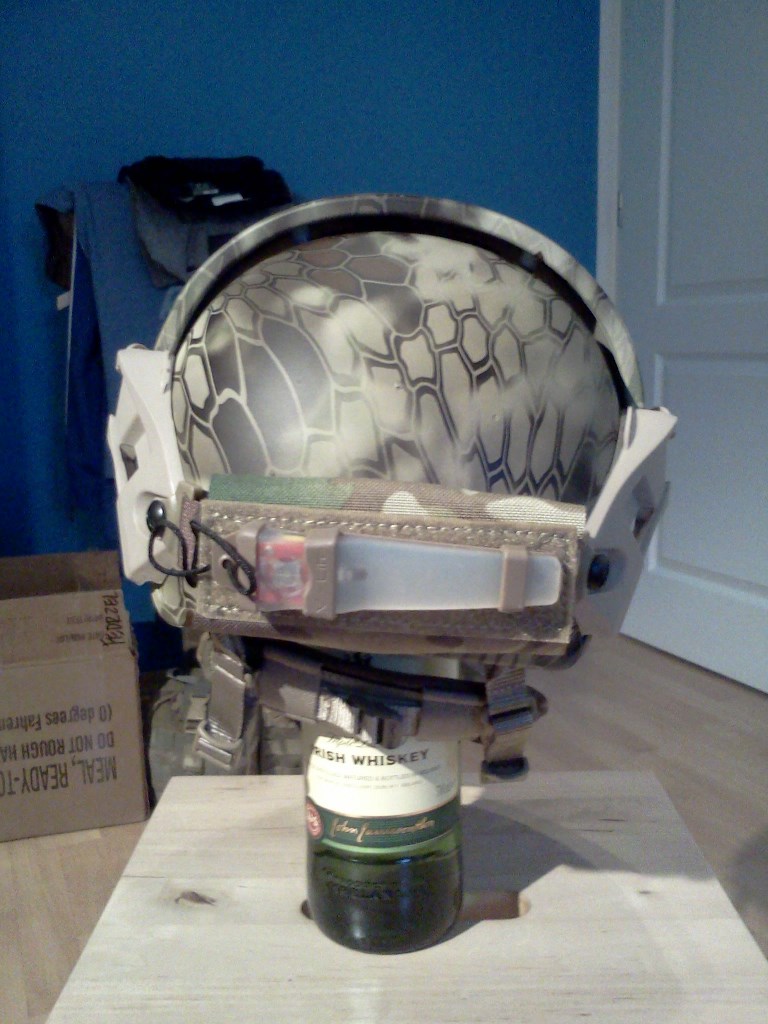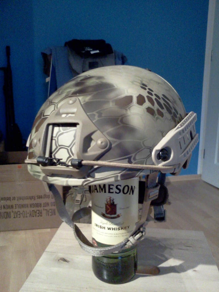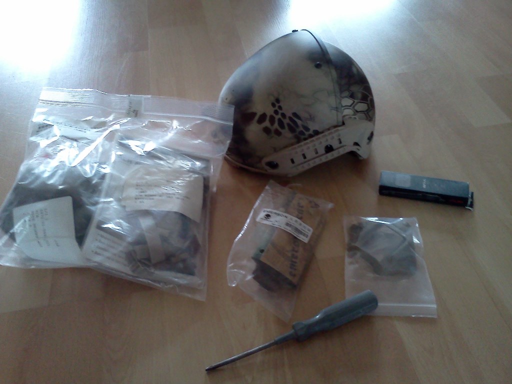 takže zas něco dalšího, tentokrát ne k Africe, ale k moderně. Přilba je kopie Crye Precision Air Frame, kterou vyrábí TMC. Jelikož jsem na netu koukal po recenzích, už dopředu jsem věděl, že celej vnitřek je naprd. Naštěstí se podařilo sehnat, takže jsem dokoupil origo Ops Core H nape pad a Ops Core polštářky. Taky jsem k helmě vzal rovnou VAS montáž na NVG a kapsu na baterky dozadu.