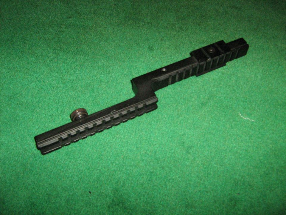 1) "Z" RIS lišta do nosného ucha M4/M16, kromě montáže optiky/kolimátoru na ucho umožňuje díky protažení až nad předpažbí i montáž AN/PEQu, svítilny nebo podobně i bez RIS předpažbí. Taková trochu rarita, moc se to nevidí a přitom to vypadá těžce krutopřísně. Původní cena 560Kč: