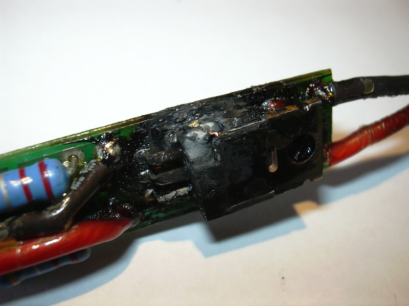 Vzhledem k nedavnym diskuzim si rada lidi mysli, ze vyroba ci uprava kabelaze do AEG zbrani je neco primitivniho ci to jde ruzne "ochcat", verte mi, ze nejde. elektrony se chovaji podobne jako voda v potrubi, je jedno jak mate jednotlive casti dimenzovane, elektorny potecou maximalne tak rychle jako je nejuzsi cast potrubi. Tudiz staci i jeden spatny spoj nebo nedostatecne dimenzovany konektor a veskera snaha o co nejmensi odpor vyjde vnivec. pro vyrobu ci upravu kabelaze existuje rada velmi dulezitych pravidel, jejich zjednodusenim ci obchazenim muzete v lepsim pripade prijit o vydrz baterie v horsim pripade bude kabelaz nespolehliva ci muze dojit k fatalnim nasledkum. Jak spravne delat kabelaz je popsano v tomto clanku: http://www.airsoftchrudim.cz/recenze/spinani_aeg_2.htmlna fotkach je upravena kabelaz Aktivni brzdy od firmy Jefftron samotnym zakaznikem. Pri vyrobe se dopustil rady fatalnich chyb, ktere vedly k destrukci spinaciho mosfetu u brzdy, protoze jim prochazel vyssi proud nez je konstruovany. Chyby jsou popsany na nasledujicich fotkach. Pod neumite zachazet s pajkou, nechce to udelat nekomu jinemu!