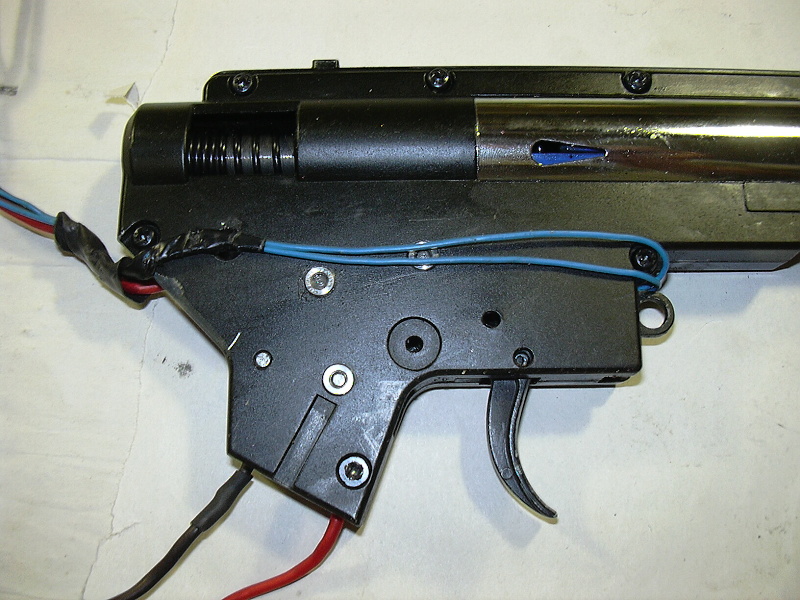 Take pridam co se me dostalo na stul, instalace mosfetu s 6 vodicovym zapojenim a ty modre signalove vodice se bezproblemu vejdou do mechu, diky tomu se vychyloval mech coz delalo neplechu a zbrouseni mechu v zadni casti od majitele tomu nepomohlo... Popripade kdyz nekdo nema misto v mechu staci si propipat signalovy vodic ktery je jako reference + a napojit ho na vykonovy plusovy kabel uz v mechu, neni treba ho vest az k mosfetu, viz clanek: http://www.airsoftchrudim.cz/recenze/spinani_aeg_3.html