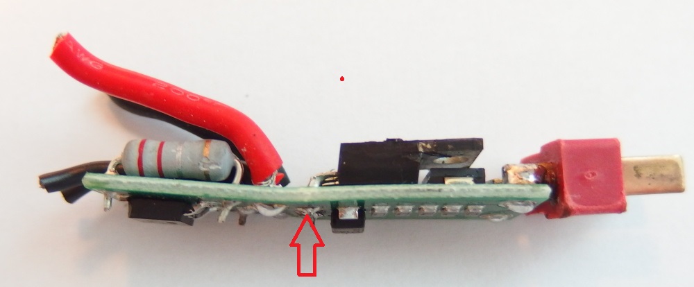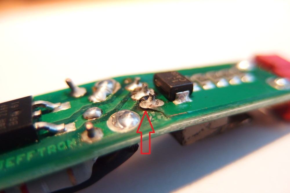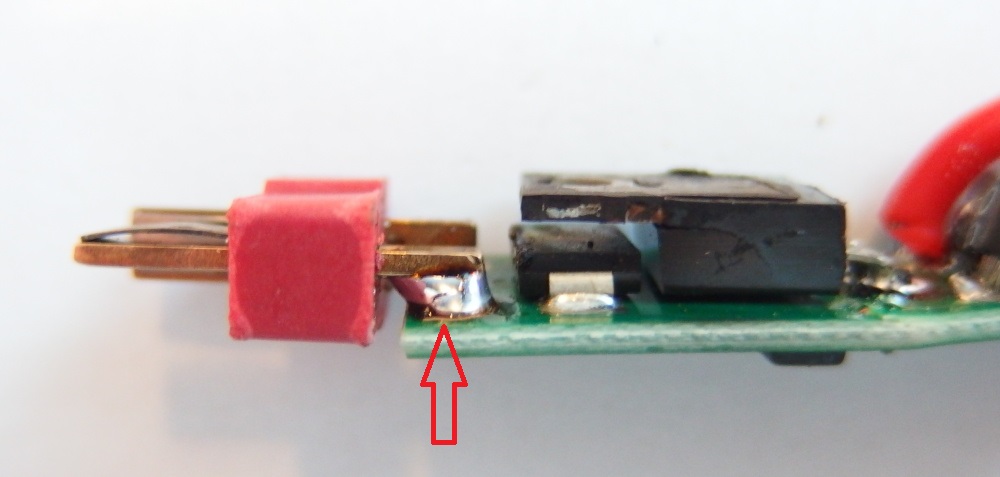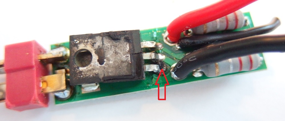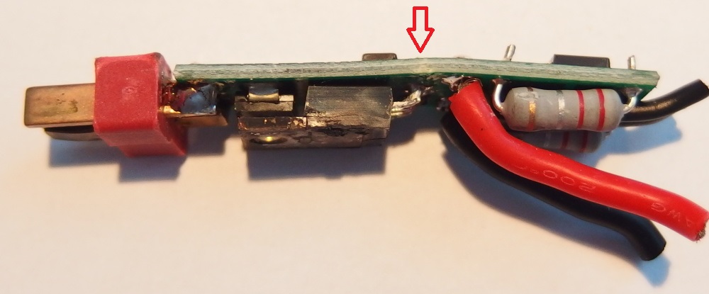 Proto jsem do toho nehrabal a jen to ustřihl natvrdo ze zbraně a tak jak to bylo zaslal. Jeffe děkuji za čas při rozborce i nabídku na slevu příštího nákupu. To protržení bužírky zespod si myslím mělo za následek určitě to spálení a teplo s toho vzešlé - nehledě na to, že mosfet se nacházel(byl umístněn v šachtě umělohmotné crane pažby a v trnu byla 11.1 tyčka lipolka. No Ohnutí toho tišťáku jsem si popravdě vůbec nevšiml, ale i to by mohlo být tím poblémem... Jestli kolega při vyměně baterie ohl desku tak pak se ani není čemu divit. Co se týče napájení T konektoru (moje práce samozřejmě  ) nikdy jsem s tím problém neměl... Ono nikdo taky nepoužil takovou vraždu lipolku s 50C  Nevím zda je tedy horší mít 2 spoje kde jsou přechodové proudy (deska-kabel-T konektor) nebo jeden spoj přímo T konektor na PCB desku... Moc díky za tvůj čas a nechyť se daří. Martin