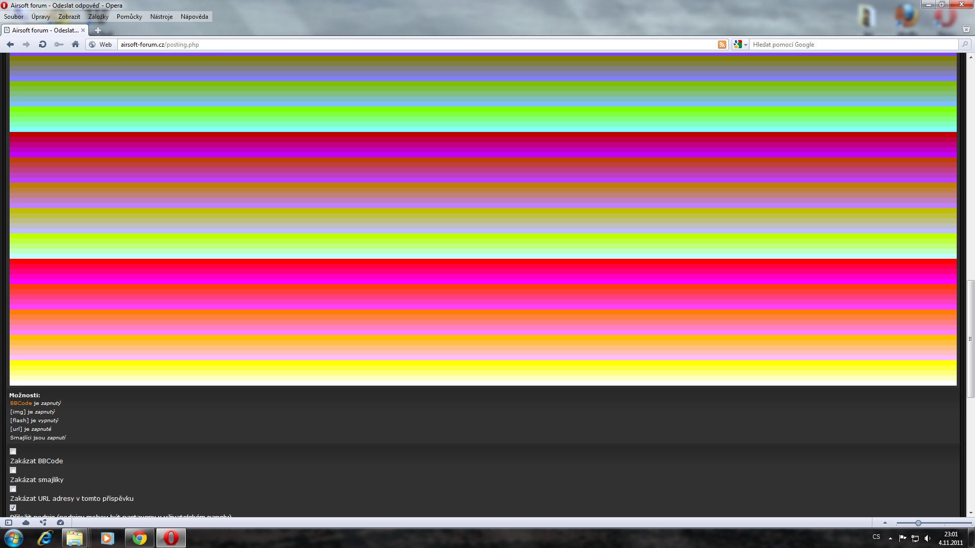 pete-11 píše: vážně nevím kam stim .... na opeře to nějak zlobí  na fotce jen slabej odvar toho co vidim teď při zakládání tematu  tohle mi opera taky delala, delala to verze 10.51 tusim. nicmene obecne je podle me opera nejhorsi prohlizec, protoze tolik problemu co jsem mel s operou jsem nezazil nikde - i nas programator rikal ze opera ma problem ze se proste pri cteni zdrojoveho kodu kousne nebo cast zdrojaku preskoci, potom vznika to co vznika. je sice pravda ze ma opera fajn funkce, ktere ostatni prohlizece nemaji, nicmene existujou pluginy ktere opera funkce nacpou treba do firefoxu  zkus uplne odinstalovat operu a stahnout nejnovejsi verzi. mi to tehdy pomohlo tak u 50% problemovych stranek. hodne tam zalezi jestli mas i nejake nainstalovane pluginy a moduly nebo jak se to jmenuje. ty taky muzou delat bordel.