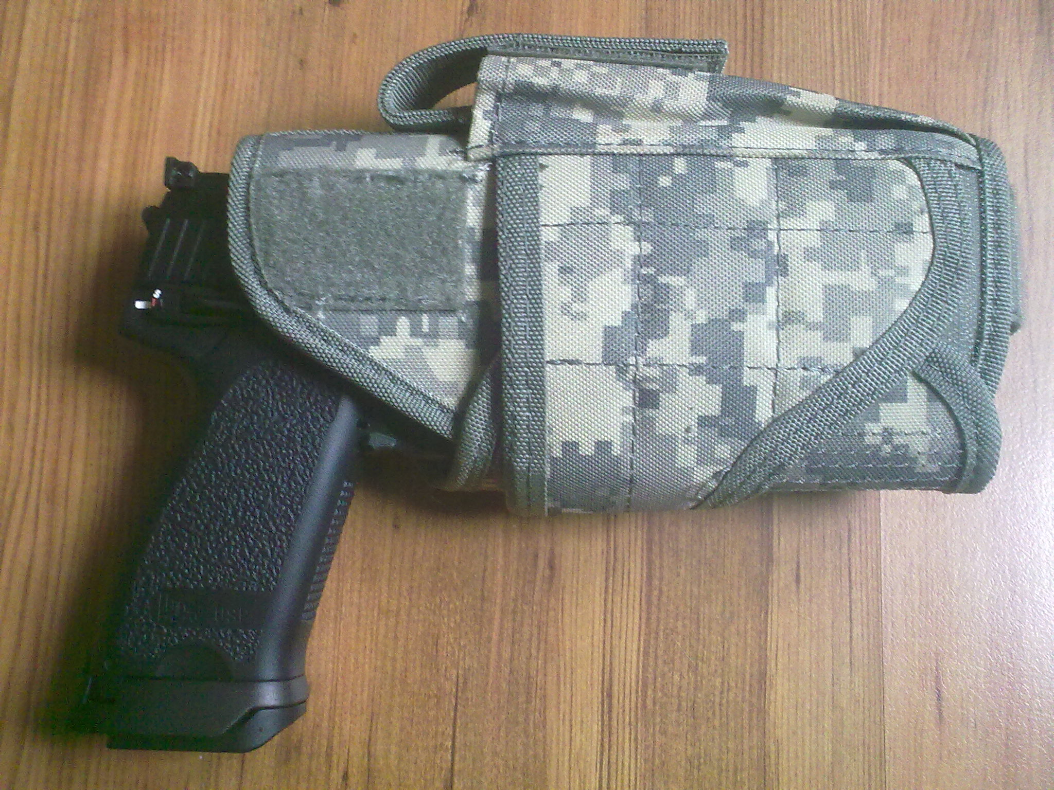 tak puzdro dorazilo , spravil som menšie úpravy a myslím že bude viac než dostačujúce. Zbraň v ňom drží veľmi dobre po nastavení suchých zipsou . Putká pre opasok ešte prešijem , lebo sú príliš dlhé ale už teraz celkom dobré sedí. Příloha: