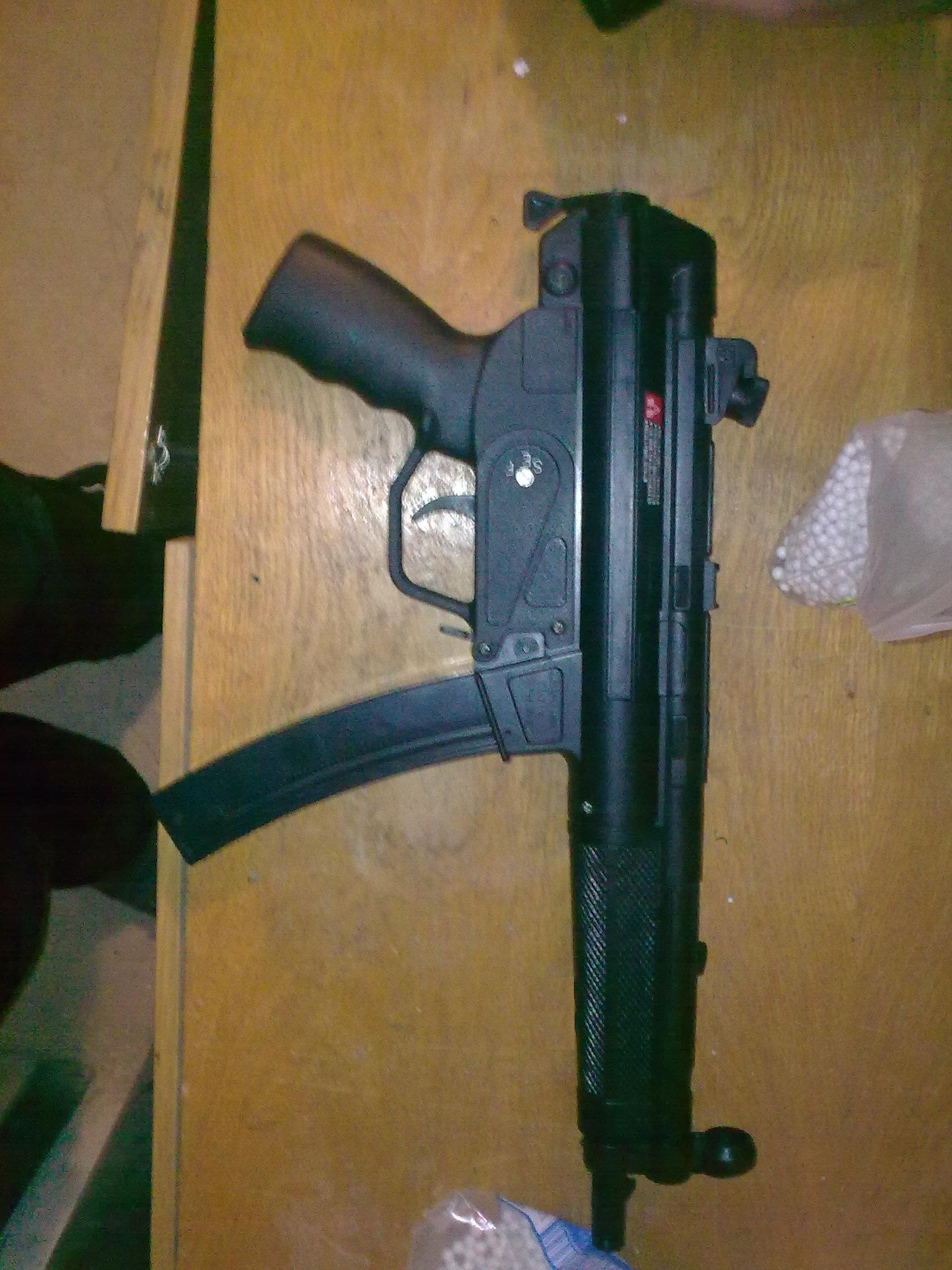 Upgrade: Velmi doporučuji zbraň rozebrat, to provedete tak, že zbraň položíme na stůl, aby její hlaveň mířila napravo od nás. Potom odšroubujeme mušku a pažbu a odšroubujeme 2 šroubky v rukojeti. Pak stačí odšroubovat tři šroubky a zbraň opatrně rozcvaknout. Když se tam něco uvolní, nezoufejte, fotka jak to má být je přiložena. Potom ze zbraně vytáhneme hlaveň a podložíme hop-up. Když budeme s podložením hopu spokojeni, podložíme tak o centimetr pružinu(přidávám pouze foto v základu-při upgradování jsem nefotil). Pružinu nejlépe podložíme tak, že tu tyčinku vzadu zbraně, na které je pružina na konci omotáme elektrikářskou páskou a potom ji seřízneme na míru. Pružina jde vyměnit(standartní m80) za m 130, ale to už je moc prasoupgrade. Když pružinu podložíte moc, nepůjde zbraň nabít. Potom zbraň sešroubujeme definitivně, musíme ji secvaknout, i když zbraň protestuje a vydává divné zvuky, stačí na to jen přitlačit, ale zase ne tak, aby jste ji zlomili. Další nutný začátečnický upgrade je následující: Dole na zásobníku je taková jako když plastový šroubek. Buď ho můžete šikovně zakápnout sekunďákem(ale fakt opatrně, ať neslepíte zásobník), nebo přelepit páskou. Tento „šroubek“ drží pružiny zásobníku, a není příjemné, když se zásobník v boji(v lese) rozstřelí a musíte hledat pružinky. Tento upgrade VELMI doporučuji, i když s MP5 budete střílet jinak v základu. Neprovedením tohoto upgradu riskujete ztrátu zásobníku.