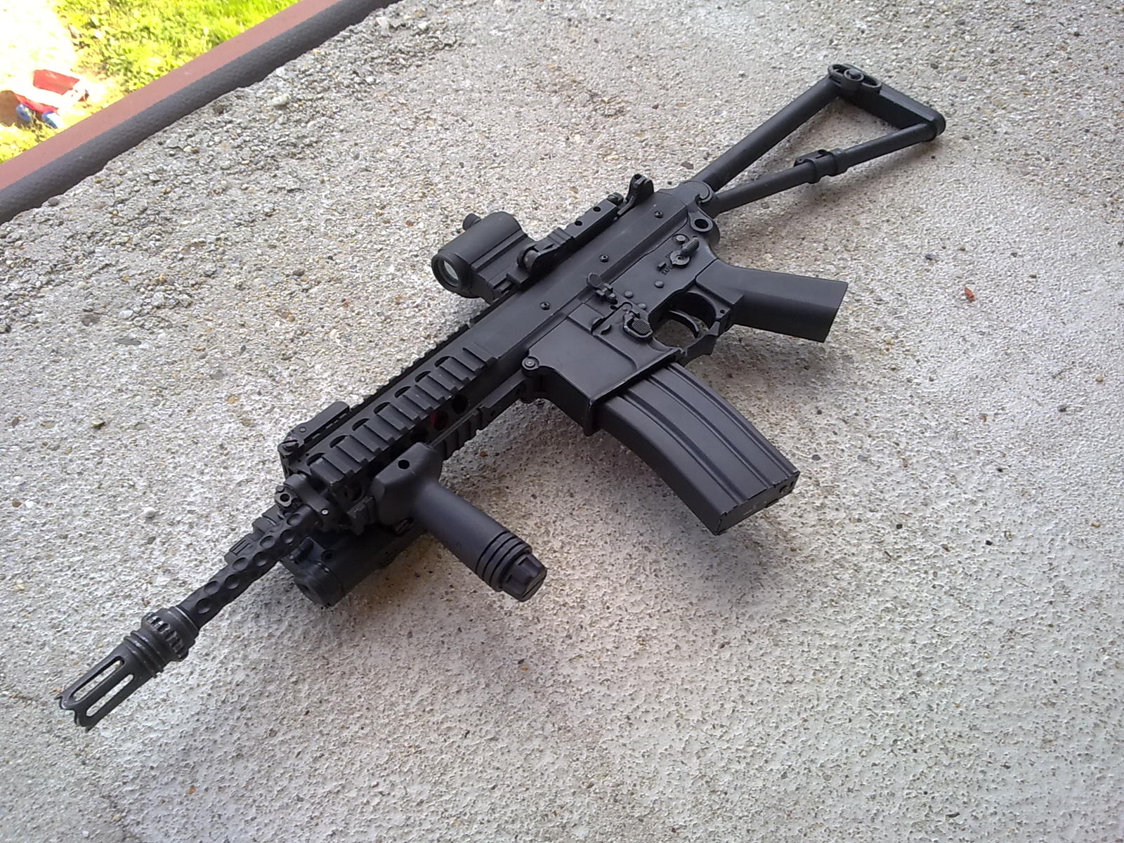 ACOG tam přijde určitě, ale právě jsem chtěl to cáknout na khaki a pažbičku koupit taky přímo v barvě khaki ale ještě uvidim, a taky se mi to líbí s klasickou výsuvnou M4kovou pažbou.