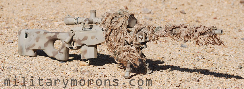 Na maskování zbraně je nejlepší sniper mesh - síťovina vychytaná tak, že nikde nepřekáží (jako barakuda, nedejbože shemag na zbrani), dá se kolem hlavně a puškohledu stahovat, je na tom našitá padákovka pro uchycení juty...