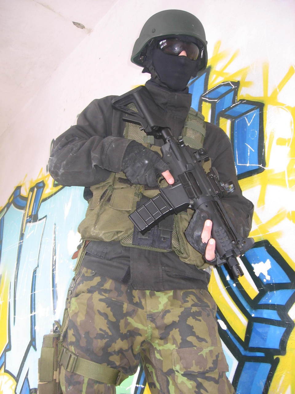 No a ani ta kombinace barev není ideální....černá uniforma + olivová výstroj ok ale tohle tak na půl cesty...