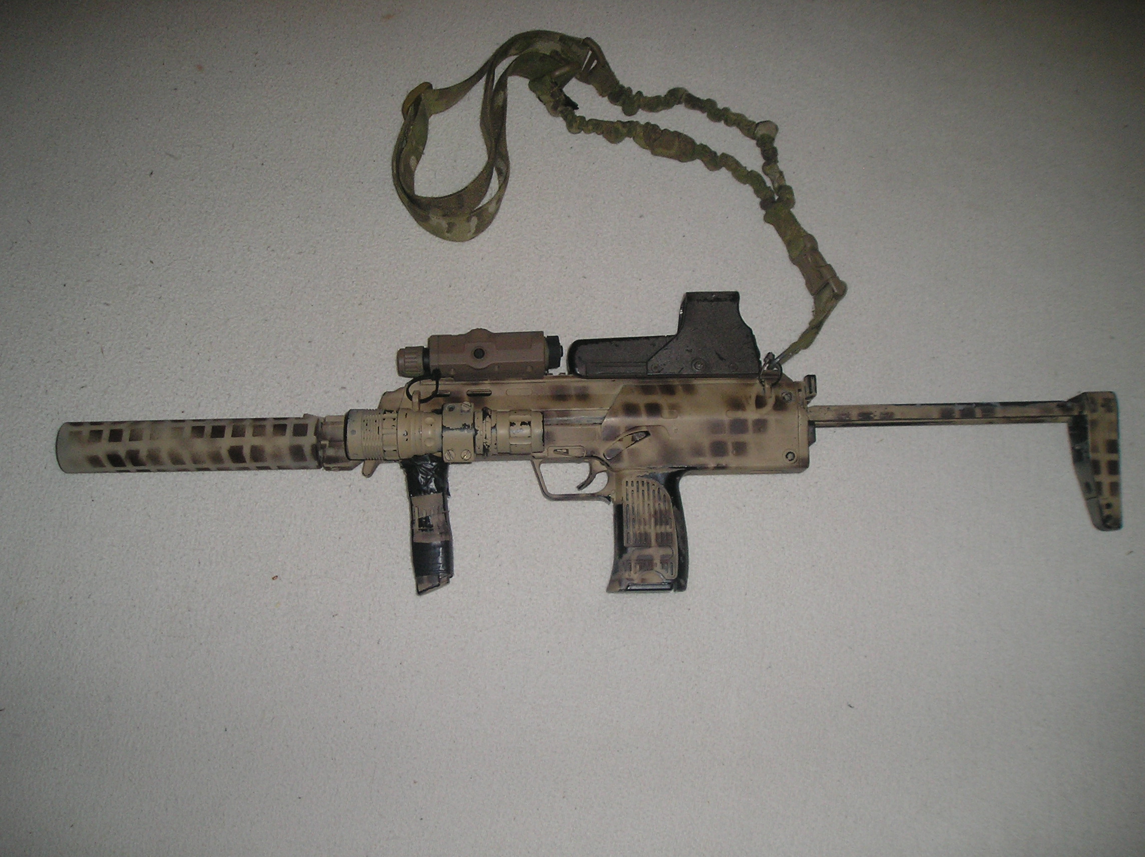 Tlumic je King Arms light weight 245x45mm Gordon ve filmu mel nejaky nerealny prop na zavit m733 hlavne, realny mel podle vseho727a na nem neco jako se prodava OPS silencer od guarder atp. Ten co mam ja zamenuju za 7cm vnejsi hlaven, abych mohl prohazovat konfigurace, chytreji jsem to bohuzel nevymyslel... Zbran je puvodne marui m733, CA telo a semtam nejaka jina soucastka. Toho vroubkovani na pazbe jsem si ani nevsiml, ted uz to asi menit nebudu  Jo a co se montaze tyce kdyztak PM co by tam podle tebe melo byt jinak.