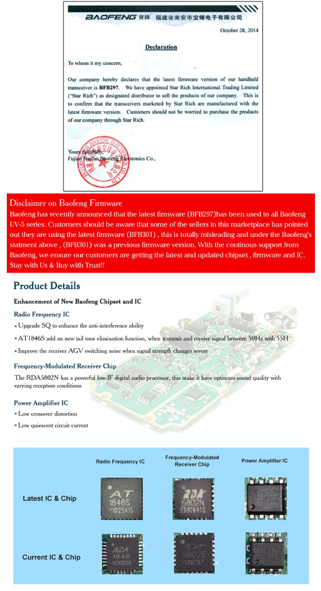 Tiež mám Baofeng UV 5R verziu 297 a som spokojní. Nemám snou žiadne problémi.