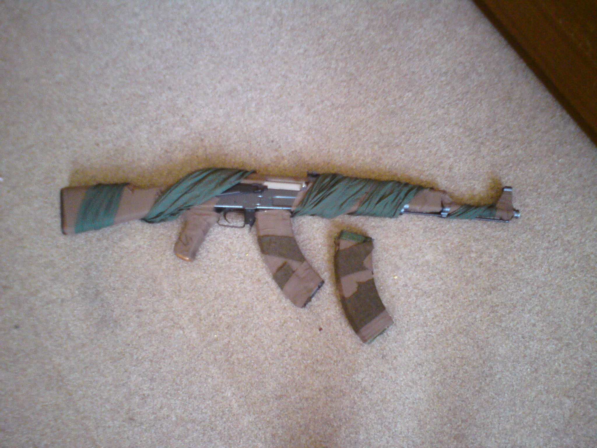 tady jsou moje guny, je tam M4 CQB od PJ, L96 (MB-01) od wellu s optikou M3, USP od DE sry za kvalitu fotek je to focený mobilem